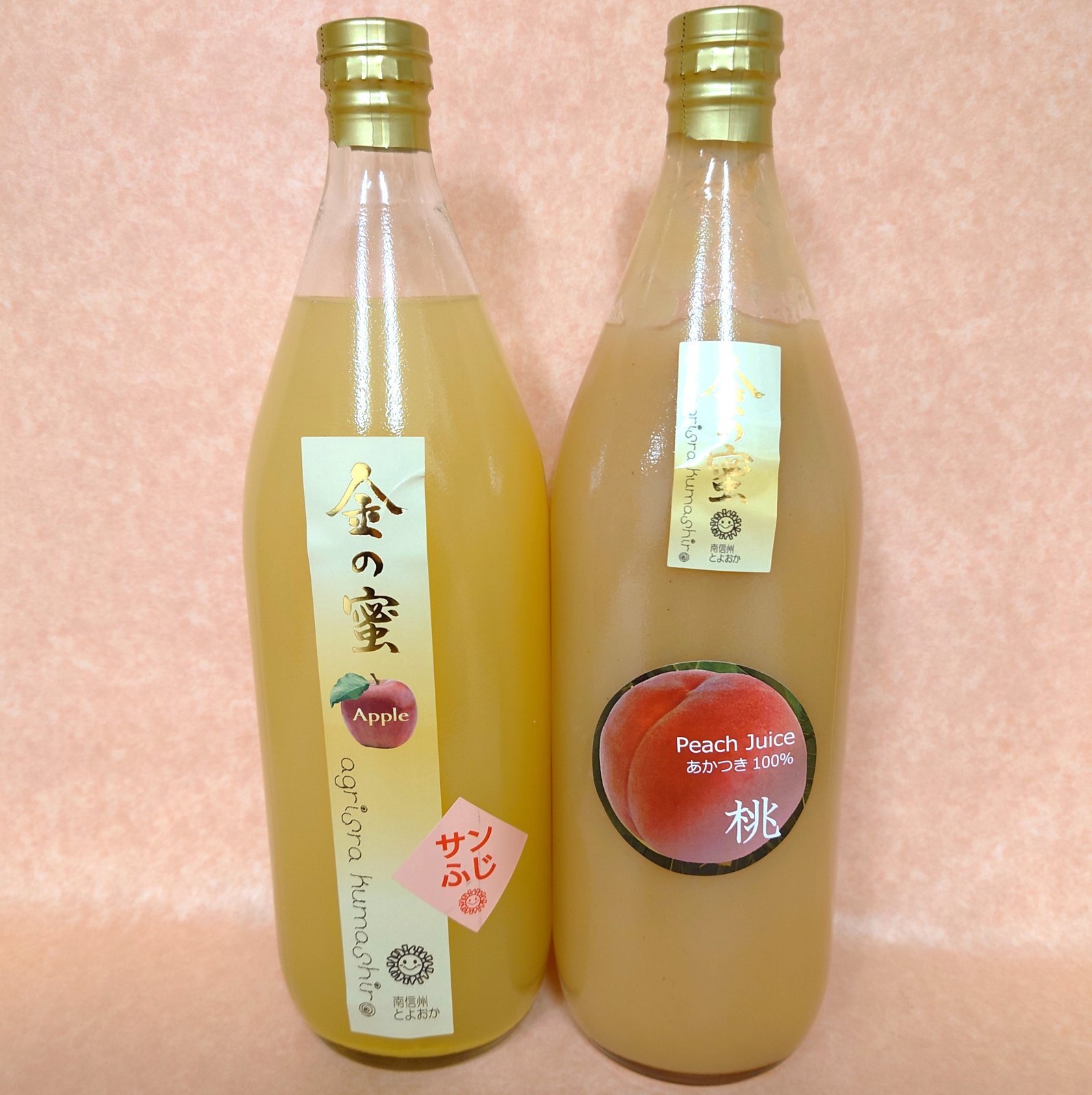 こちらは桃ジュース1本、サンふじジュース1本の合計2本セットです。